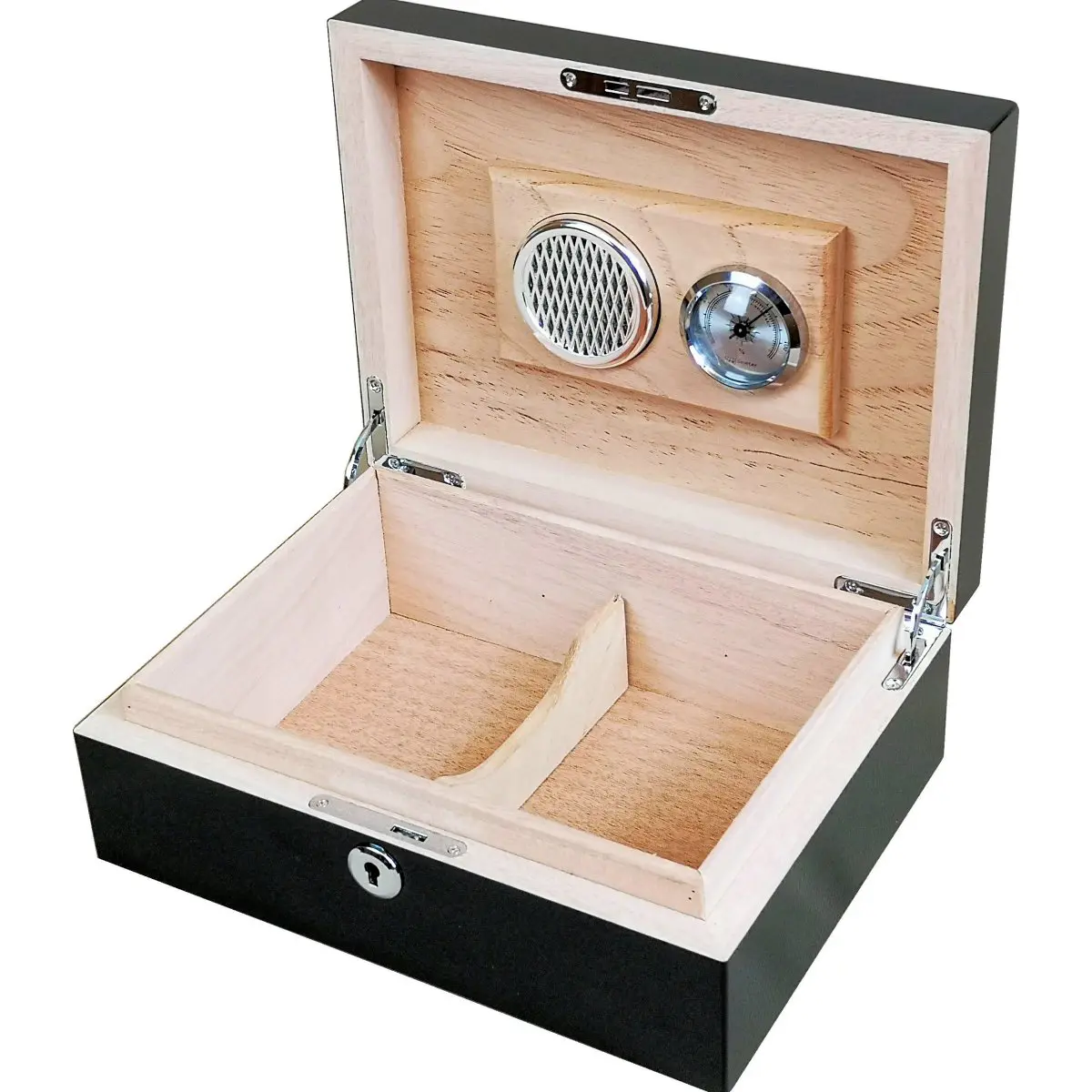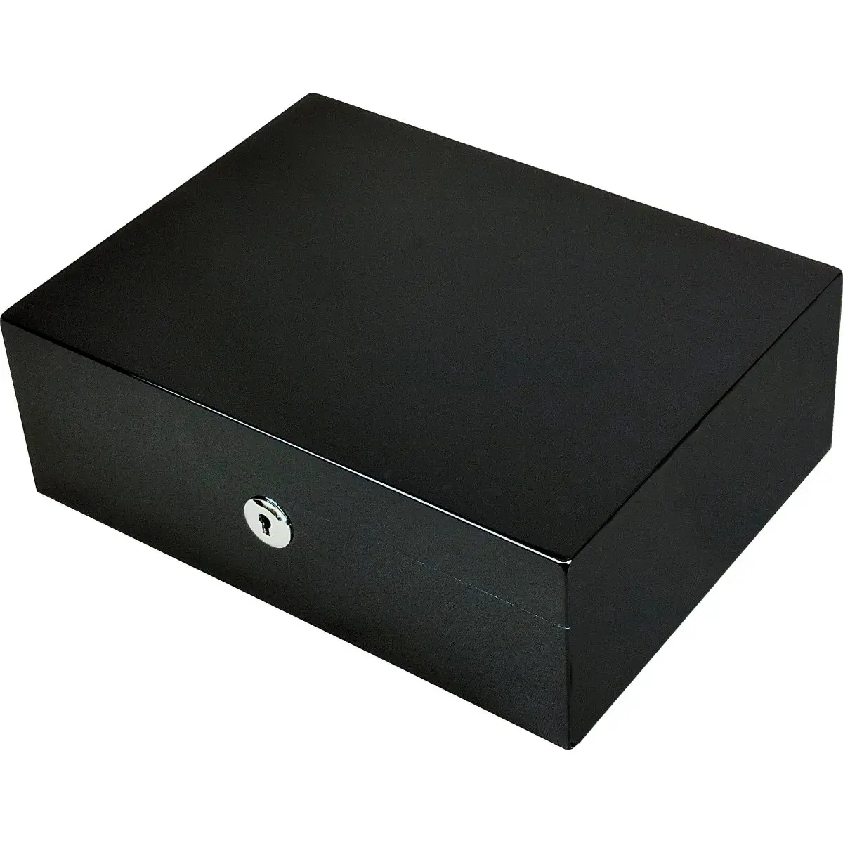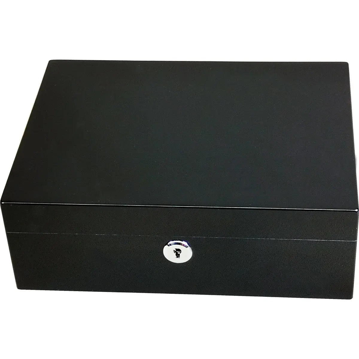 Black Lacquer 15-20 Size Cigar Humidor with Lock