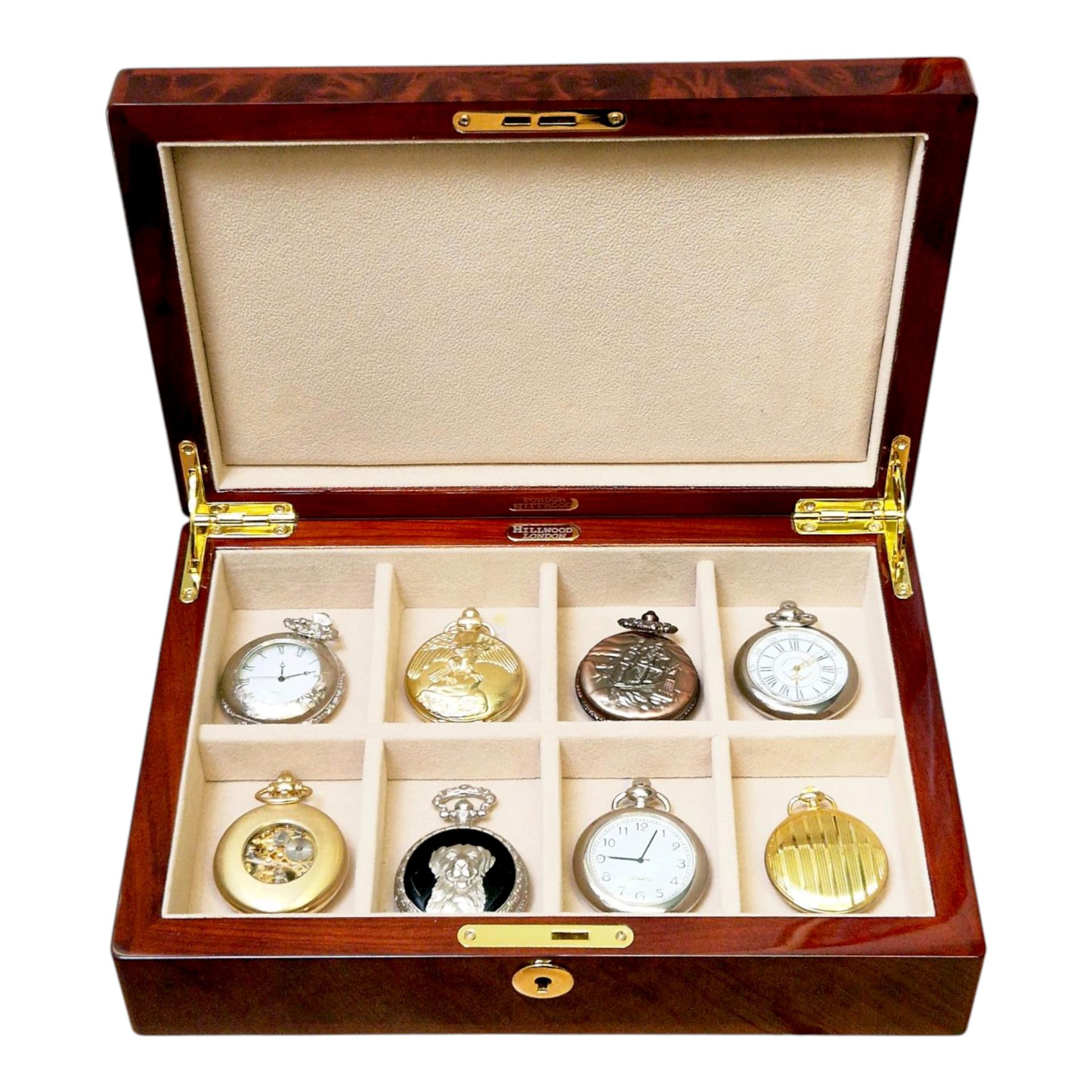 This is the perfect solution for storing treasured pocket watches. There is also a key lock to keep it closed and secure. A perfect gift for any pocket watch collector.